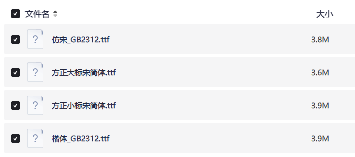 6、【PC】公文常用字体 仿宋GB2312 楷体GB2312 方正大标宋等四款[15.2Mb]Win、Linux免费观看全集高清网盘资源