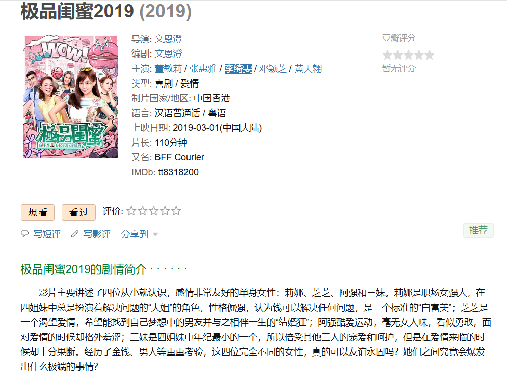 6、❤️【香港都市爱情喜剧片】极品闺蜜2019【2019】BD1080P [中文字幕] [6G]免费观看全集高清网盘资源