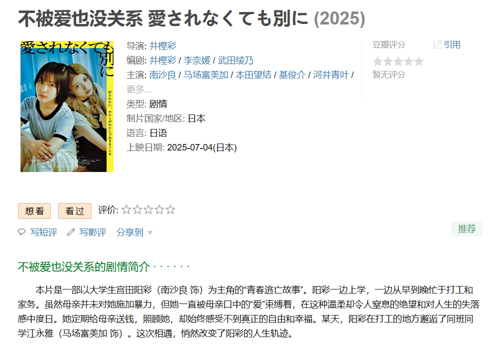 ❤️【岛国青春爱情片】不被爱也没关系【2025】BD1080P [外挂中文字幕] [7.7G]