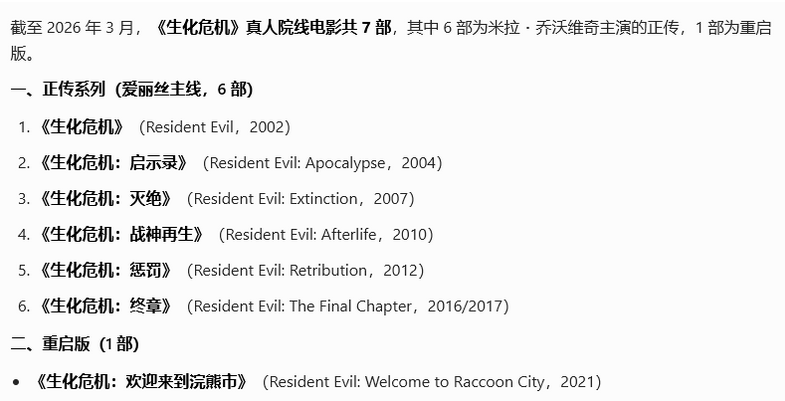 1、本贴标题:生化危机 全7部 4K原盘REMUX 杜比视界 国英双音 内封字幕