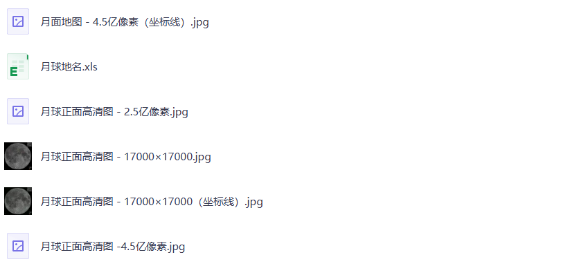 6、❤️【稀有精品珍藏资源】月球地图 5亿像素 【jpg等多格式】含标记地名 [1.4G]免费观看全集高清网盘资源
