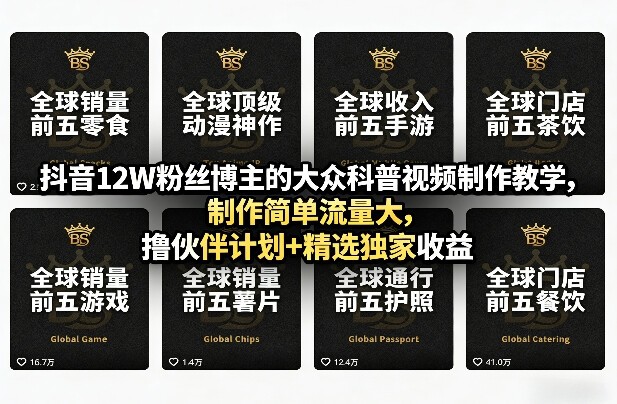 大众科普视频制作教程,流量大,赚伙伴计划+精选独家收益【408.6MB】