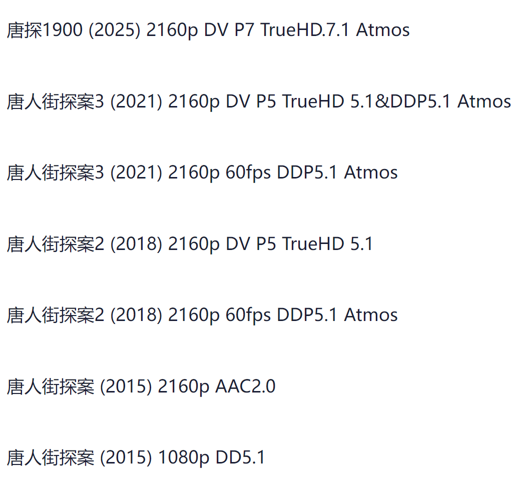 唐探系列 4部电影 杜比视界 Dolby TureHD+两部剧集 共330G