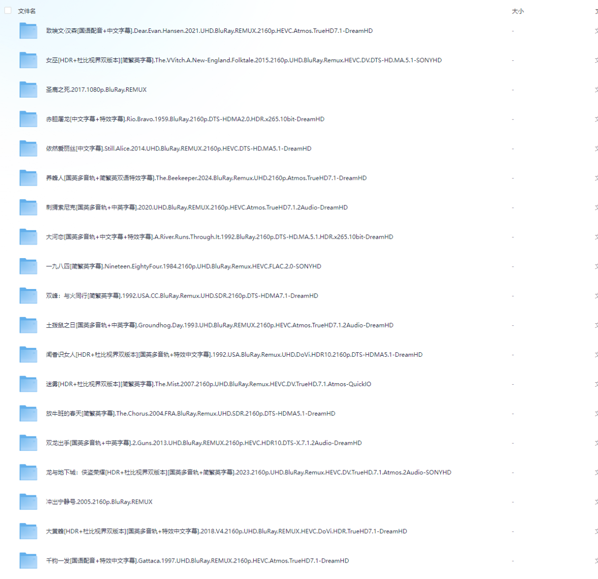全4K+UHD蓝光原盘+REMUX典藏版电影合集【内封中文字幕】【共288部】单部58G/共16.2T