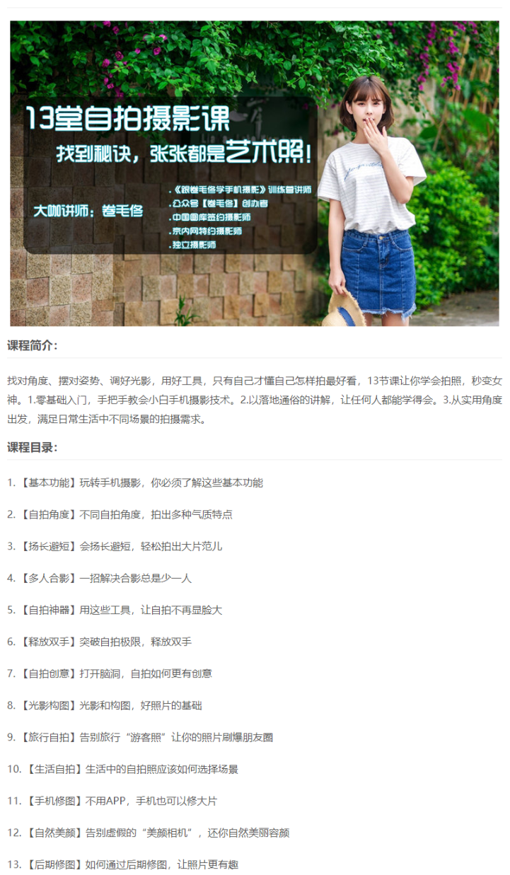 6、【卷毛佟】13堂自拍摄影课,找到秘诀,张张都是艺术照免费观看全集高清网盘资源