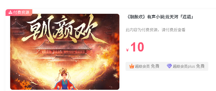 1、本贴标题:【付费资源】《朝颜欢》主播:云天河&琴师 连载至1485集 7.8GB