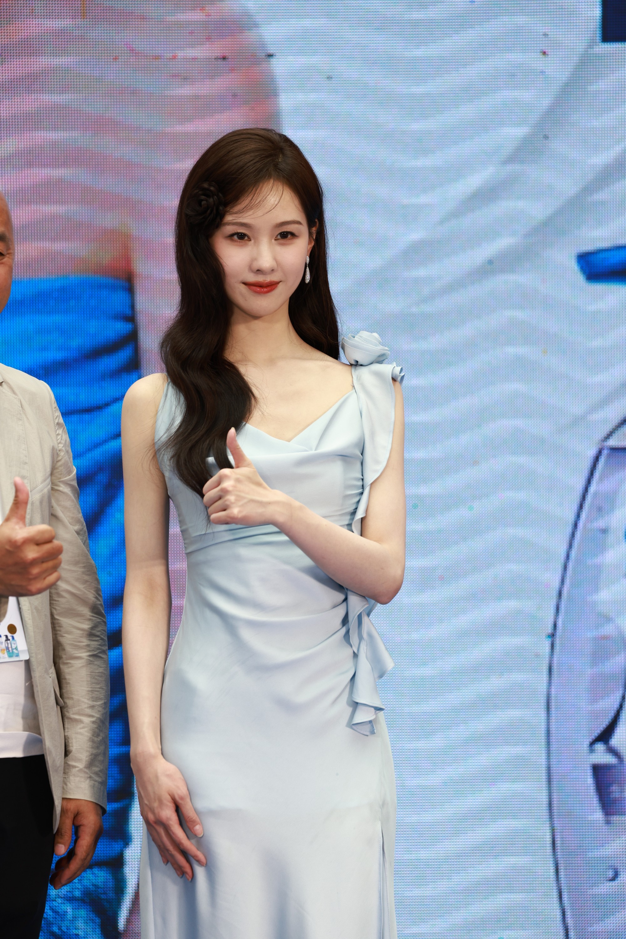陈都灵 活动生图 浅蓝色玫瑰边吊带连衣长裙[103P 1.4G]